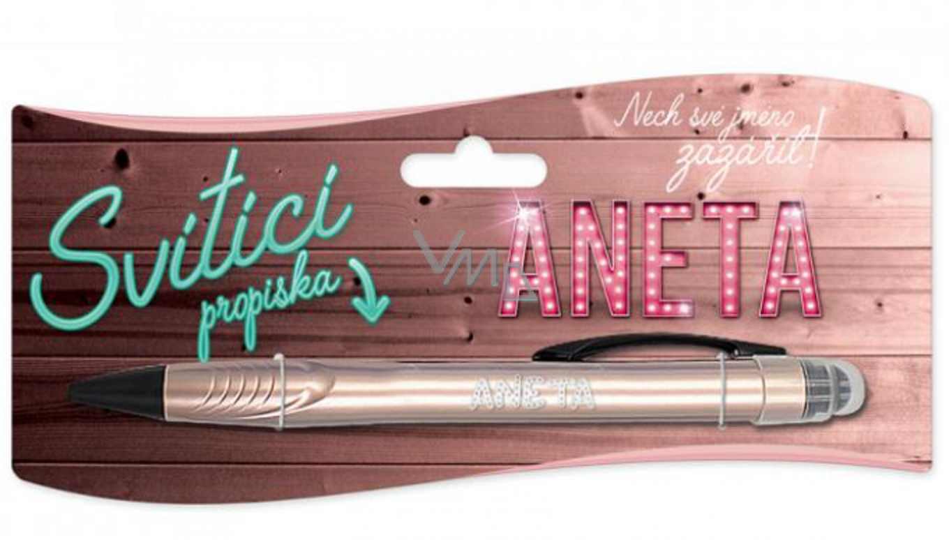 Sháníte originální dárek pro Anetu? Pak jsou svítící propisky se jmény jasnou volbou. Jedná se o milý univerzální dárek pro každou příležitost. Propisku je možno použít také k ovládání displejů dotykových zařízení.