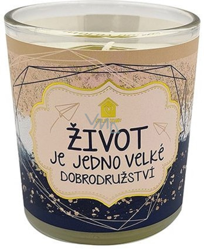 Opis Nekupto Útulný domov Život je jedno velké dobrodružství dárková vonná svíčka ve skle 9 x 9,5 cm