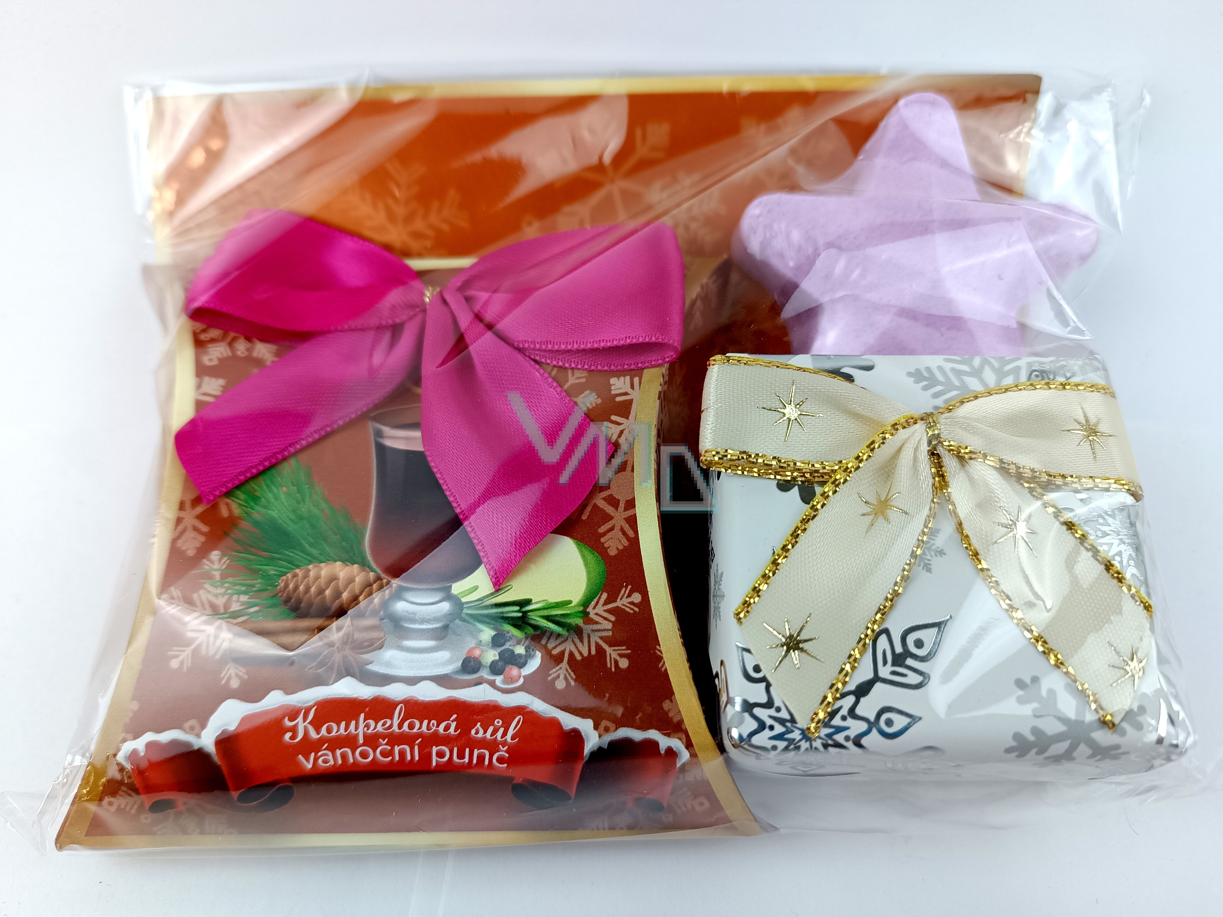 Vánoční sada koupelových přísad z kosmetické řady Moje. V setu se nachází sůl do koupele 50 g, vánoční mýdlo 100 g a šumivá koule do koupele 35 g. Vše v pěkném dárkovém balení, takže není již nutno balit. Sváteční vůně vánočního punče.