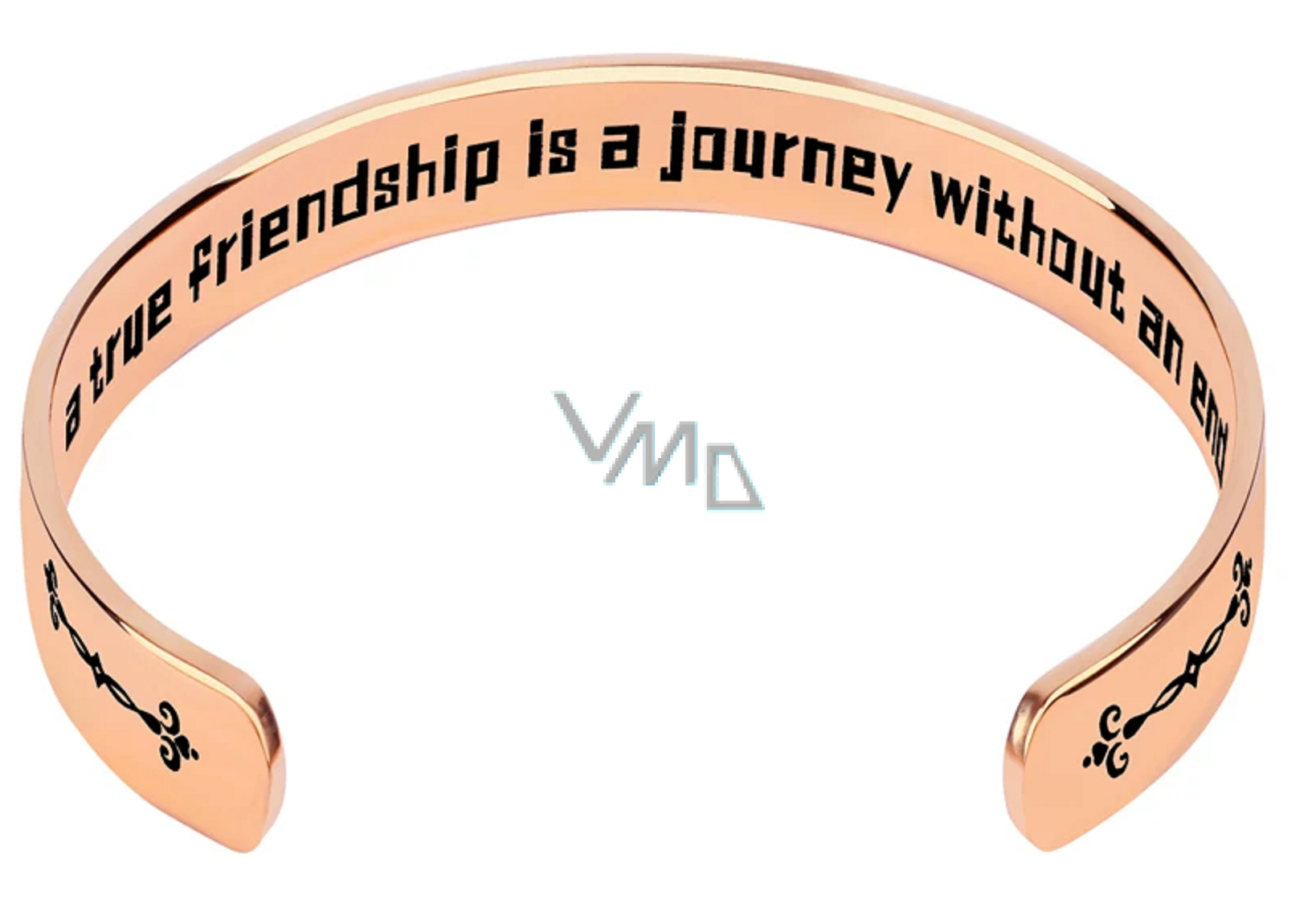 Nierdzewna stalowa bransoletka pozłacana z grawerunkiem Prawdziwe przyjaźń, otwarta mankiet, 2,5 mm