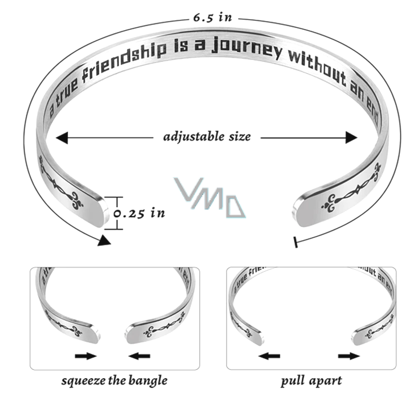 Motywacyjna bransoletka jest wykonana z hipoalergicznej stali nierdzewnej, jest odporna, mocna, ale jednocześnie lekka. Jest wystarczająco elastyczna i przy delikatnym ucisku lub umiarkowanym rozciągnięciu można ją dostosować do większości rozmiarów nadgarstków. Podaruj oryginalny prezent i wyraź w ten sposób miłość lub wdzięczność obdarowanemu!