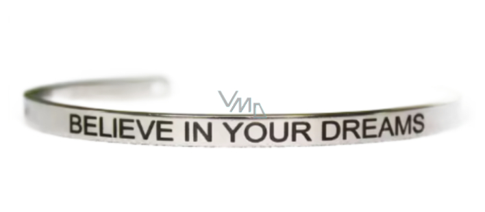 Bransoletka ze stali nierdzewnej z grawerem Wierzyć w swoje sny, otwierana mankietem, 4 mm