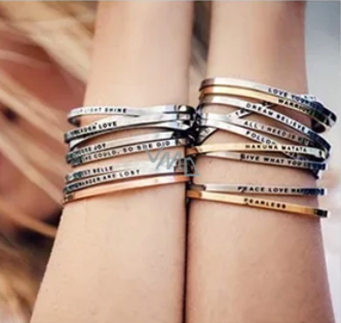 Motywująca bransoletka wykonana jest z hipoalergicznej stali nierdzewnej, jest wytrzymała, solidna, ale jednocześnie lekka. Jest wystarczająco elastyczna i delikatnym uciskiem lub umiarkowanym rozciągnięciem można ją dopasować do większości rozmiarów nadgarstka. Podaruj oryginalny prezent i wyraź w ten sposób miłość lub wdzięczność obdarowanemu!