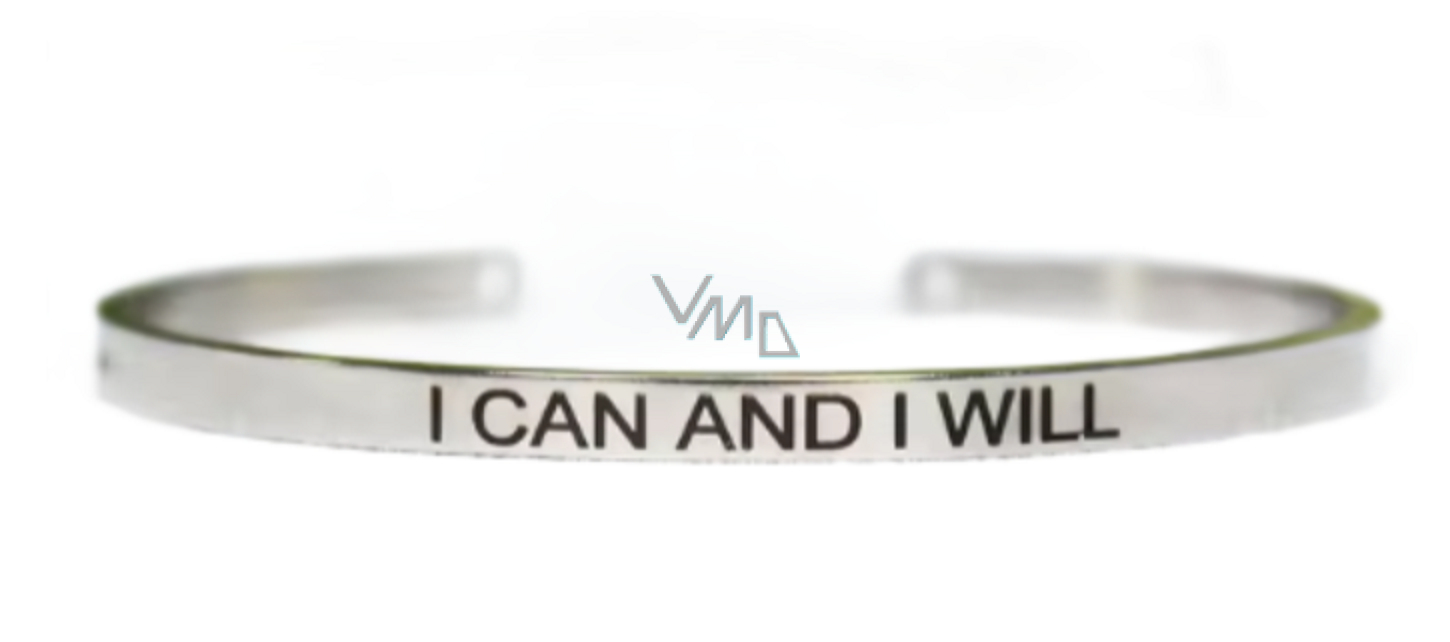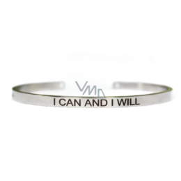 Bransoletka ze stali nierdzewnej z grawerem Ja mogę i będę, otwarta mankieta, 4 mm
