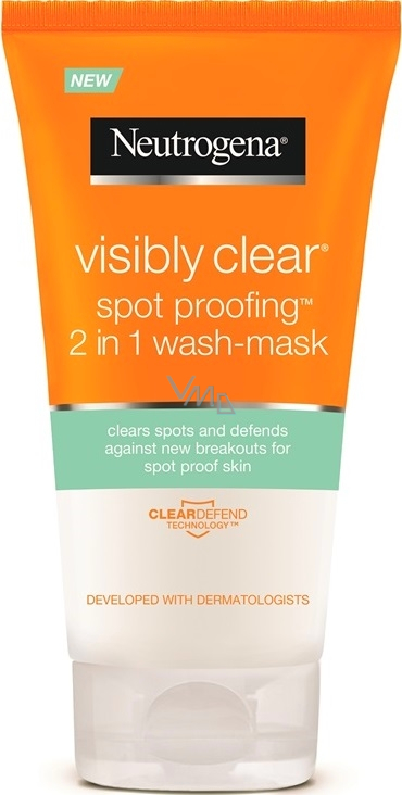 Neutrogena Visibly Clear Spot Proofing 2 v 1 čisticí emulze a maska pomáhá čistit pupínky již od prvního použití a zachovává přirozenou ochranu pleti. Používejte jednou týdně jako pleťovou masku pro odstranění přebytečného mazu. Zanechává pleť svěží, posílenou a krásnou. Složení s čisticím účinkem bojuje proti pupínkům do hloubky pórů. Je klinicky prokázáno, že zanechává většinu základních živin neporušených a buduje přirozený štít, který pomáhá chránit před novými pupínky.