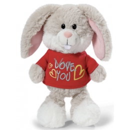 Plyšový králík v tričku Love you od společnosti Nici. Tato společnost má nejpřísnější požadavky na kvalitu a bezpečnost při hraní. Řadí se mezi nejuznávanější, nejkvalitnější a nejlépe hodnocené výrobky plyšových hraček a jiných předmětů na světě.