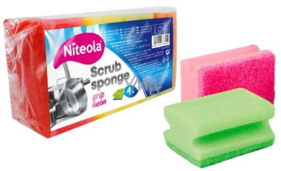 Niteola Grip Scrub Sponge Ultra formowana gąbka do naczyń 9 x 7 x 4,5 cm 4 sztuki