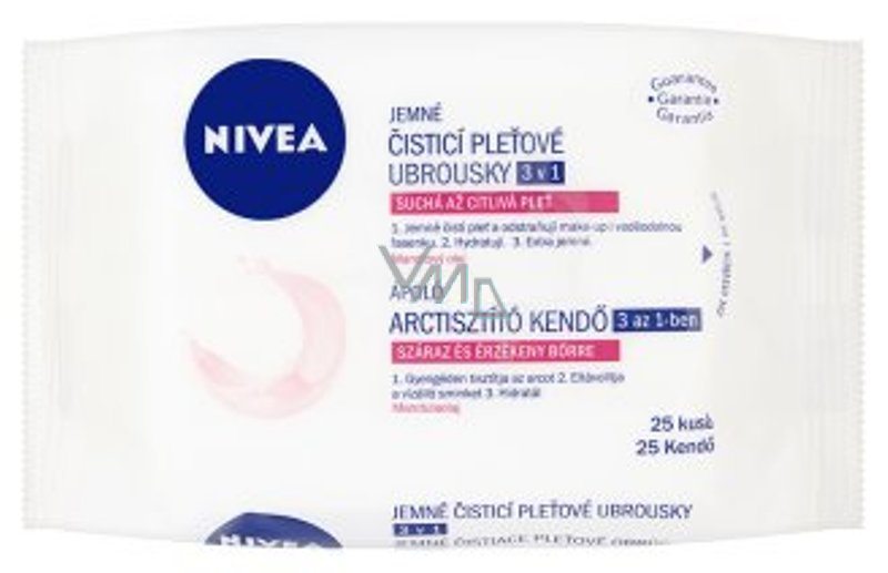 Nivea Zklidňující čisticí pleťové ubrousky Aqua Effect obohacené o přírodní mandlový olej a aktivní látku hydra IQ jedním krokem důkladně odstraňují z tváře, oblasti očí a krku make-up i voděodolnou řasenku a zároveň respektují přirozenou rovnováhu hydratace pleti. Dermatologicky a oftalmologicky testováno a schváleno.