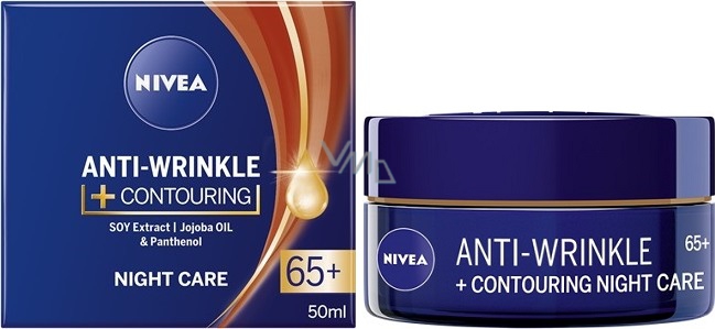 Vyspěte se do krásy. Bohatý krém v noci zregeneruje vaši pleť a poskytne jí intenzivní hydrataci. Zkuste prvotřídní péči pro zralou pleť: Nivea noční krém pro zlepšení kontur 65+. Probouzejte se každý den o trochu krásnější. Noční krém se sójovými výtažky, jojobovým olejem a panthenolem bude hýčkat vaši pleť během spánku. Viditelně redukuje jemné linky, takže se vaše pleť krásně vyhladí a rozzáří. Ráno pak v zrcadle uvidíte, že se kontury pleti vypínají a hluboké Vrásky pomalu mizí. Vsaďte na kvalitu: Nivea noční krém pro zlepšení kontur 65+.