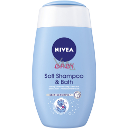 Szampon i płyn do kąpieli Nivea Baby 2 w 1 delikatnie myje wrażliwą skórę dziecka oraz delikatne włoski. Skład z rumiankiem. pH przyjazne dla skóry dziecka. Bez parabenów, alkoholu i barwników. Zawiera tylko bardzo delikatne i łagodne składniki. Delikatny dla oczu, już żadne łzy podczas mycia.
