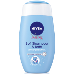 Szampon i pianka do kąpieli Nivea Baby 2 w 1 delikatnie myje wrażliwą skórę dziecka oraz miękkie włosy. Skład z rumiankiem. Opracowane we współpracy z dermatologami i pediatrami. pH przyjazne dla skóry dziecka. Bez parabenów, alkoholu i barwników. Zawiera tylko bardzo delikatne i łagodne składniki. Delikatny dla oczu, już żadnych łez podczas mycia.