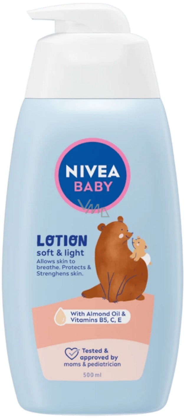 Nivea baby mleczko do ciała pozwala skórze maluszka oddychać, ale jednocześnie ją chroni i wzmacnia. Nowa delikatna formuła zawiera 100% naturalny olej migdałowy oraz witaminy B5, C i E. Olej migdałowy odżywia skórę, witamina B5 łagodzi zaczerwienioną skórę, witamina C działa jako antyoksydant, a witamina E wnika głęboko w skórę i skutecznie ją regeneruje. Doskonale nadaje się również do pielęgnacji suchej skóry. Formuła mleczka do ciała jest wegańska i w 99,9% biodegradowalna. Ponadto nie zawiera mikroplastików ani parabenów.