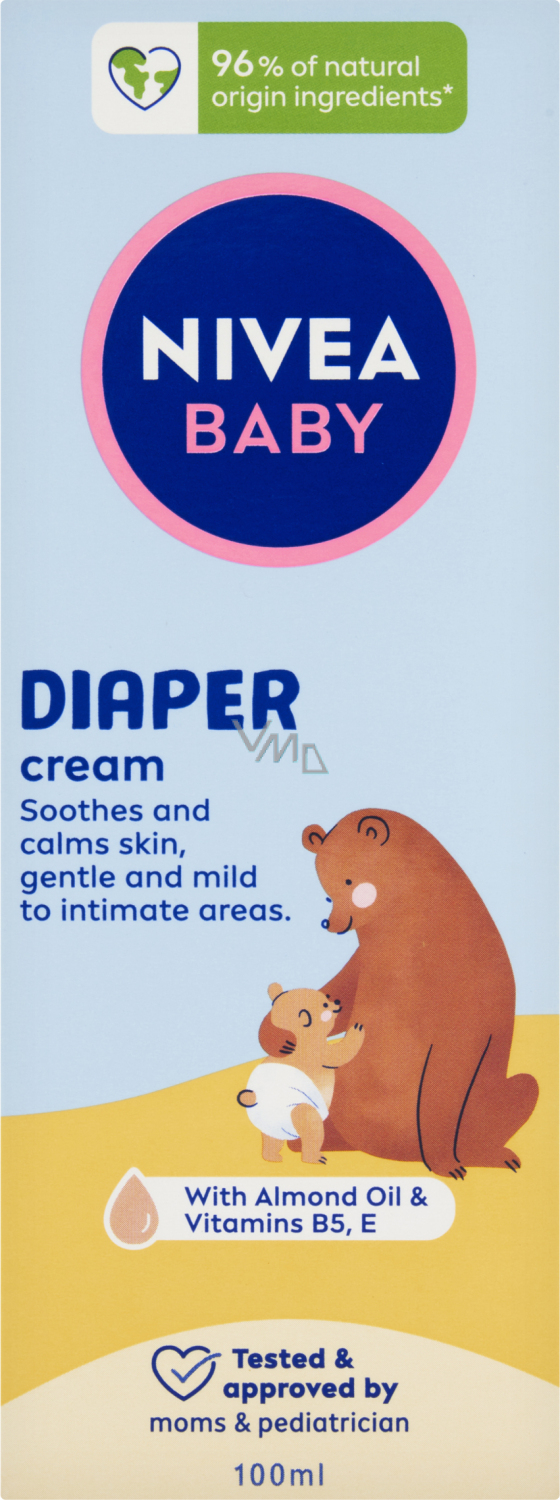 Nivea Baby Ochranný krém na zadeček se 100 % přírodním Mandlovým olejem a vitamíny B5 a E poskytuje spolehlivou ochranu a pečuje o jemnou dětskou pokožku v plenkové oblasti. Veganské a biologicky rozložitelné složení, bez mikroplastů a Parabenů.