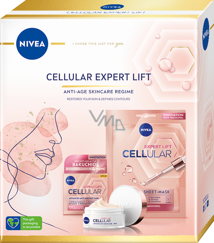 Nivea Cellular Expert Life remodelační denní krém s kyselinou hyaluronovou 50 ml + textilní pleťová maska s kyselinou hylauronovou 1 kus, kosmetická sada pro ženy