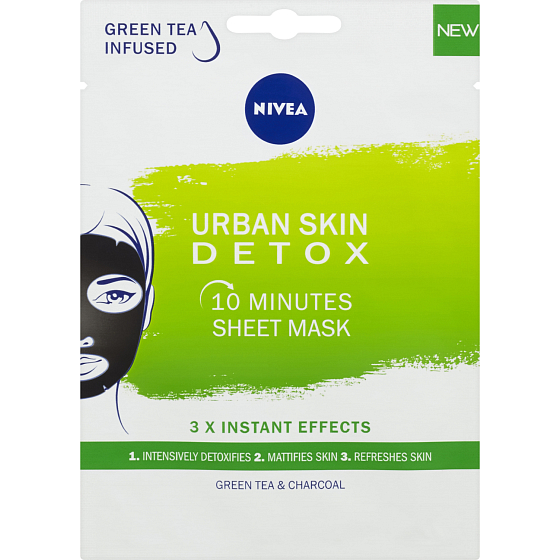 Zapomnij na pędzle, lepkie palce i maseczki na twarz wszędzie, tylko nie na twarzy! Maska tekstylna z zieloną herbatą i węglem aktywnym dobrze przylega do skóry, doskonale trzyma się i… dba, detoksykuje, matuje i odświeża. Krótko mówiąc, robi wszystko, aby skóra była piękna i dokładnie oczyszczona. Ponadto jest biologicznie rozkładalna, więc przyjazna dla natury - NIVEA 10-minutowa maska tekstylna URBAN SKIN.