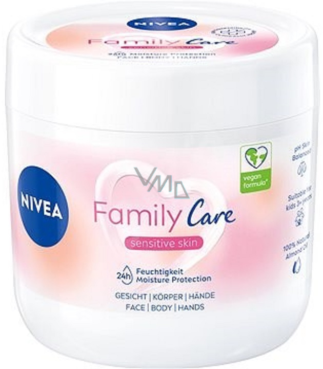 Lekki krem nawilżający Nivea Family Care na ciało, twarz i ręce jest odpowiedni również dla skóry wrażliwej u dzieci od 3 lat i dorosłych. Kojący skład z naturalnym olejem migdałowym zapewnia 24-godzinną nawilżenie. Delikatne pH dla skóry. Z kremem marki NIVEA łatwo i skutecznie zadbasz o skórę całej rodziny!
