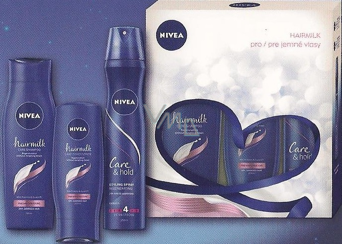 Nivea Hairmilk šampon na vlasy 250 ml + kondicionér 200 ml + lak na vlasy 250 ml, kosmetická sada