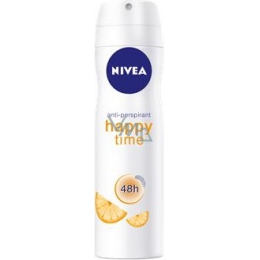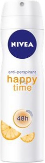 Nivea Sprej antiperspirant Happy Time s výtažky z bambusu a vůní pomerančových květů poskytuje ochranu proti pocení a přináší svěžest a povzbuzení jako po sprše.