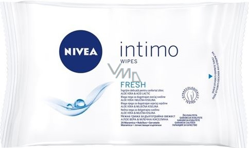 Nivea Intimo Ubrousky pro intimní hygienu Fresh jsou speciálně určeny pro citlivé intimní partie a zanechají příjemný pocit svěžesti a komfortu po celý den. Ubrousky s kyselinou mléčnou, aloe vera a vůní bílého čaje jemně čistí intimní partie a zanechají pocit svěžesti.