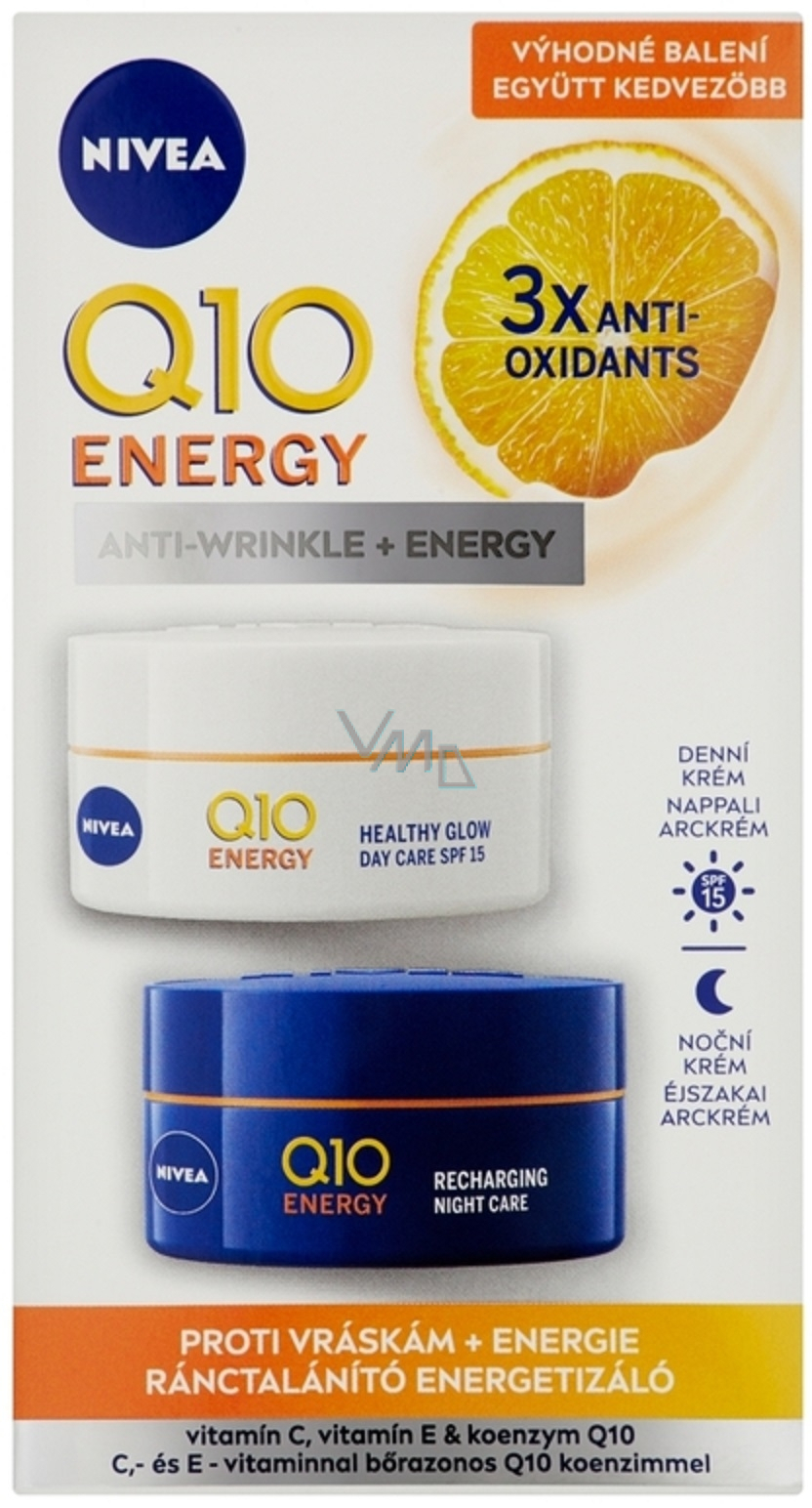 Nivea Q10 Energy energetyzujący krem na dzień przeciw zmarszczkom 50 ml + energetyzujący krem na noc przeciw zmarszczkom 50 ml, zestaw kosmetyczny
