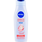 Nivea Length Wonder to szampon zaprojektowany, aby włosy odżywiać, wzmacniać i wspierać ich zdrowy wzrost. Zawiera niacynamid (witamina B3) i masło shea, które razem pomagają utrzymać długości włosów bez rozdwojonych końcówek. Włosy po umyciu są widocznie gładkie, lśniące i łatwiejsze do stylizacji. Formuła jest dodatkowo wegańska, bez silikonów i mikroplastików, ma optymalne pH i jest łagodna dla skóry głowy – dlatego jest idealna do codziennego stosowania.