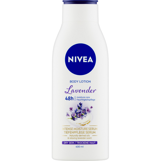 Nivea tělové mléko Orange Blossom obohacené o intensive moisture serum a avokádový olej přírodního původu pro intenzivní péči a hydrataci pokožky po celých 48 h. Složení s relaxační vůní levandule se rychle vstřebává a zanechá pokožku hebkou a zklidněnou - již po 1. použití..