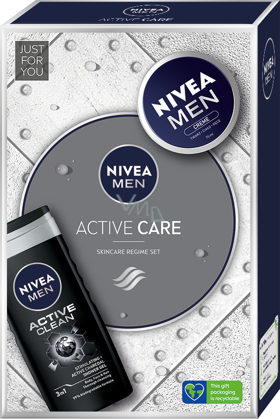 Nivea Men Active Care Creme krém 75 ml + Active Clean sprchový gel 250 ml, kosmetická sada pro muže