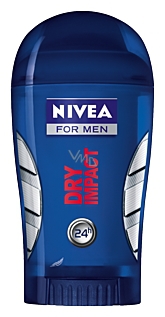 PRO MUŽE, kteří chtějí spolehlivou ochranu proti pocení. NIVEA FOR MEN Tuhý antiperspirant Dry Impact s obsahem minerálů účinně reguluje pocení a zajistí pocit příjemně suché pokožky po celých 24 hodin.