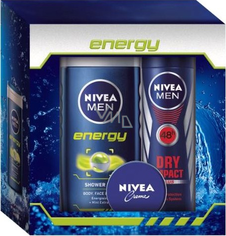 Nivea Men Energy antiperspirant sprej 150 ml + Energy sprchový gel 250 ml + krém 30 ml kosmetická sada