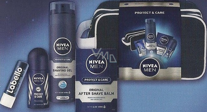 Nivea Men Protect balzám po holení 100 ml + gel na holení 200 ml + antiperspirant roll-on 50 ml + balzám na rty 4,8 g, kosmetická sada