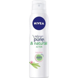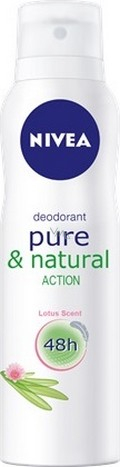 Nivea Sprej deodorant Pure & Natural Action s vůní lotosu obsahuje přírodně identické antibakteriální složky Bio-florine, které zajistí pokožce dlouhodobou ochranu.