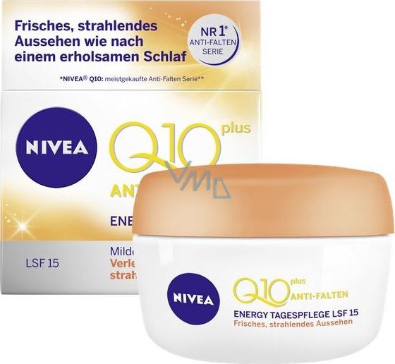 Q10 a kreatin jsou vysoce účinné látky, které se přirozeně nacházejí ve Vaší pleti. S přibývajícím věkem se jejich množství snižuje, což způsobuje úbytek energie pro další regeneraci pleti. Řada Nivea Q10 plus obsahuje účinné složení s pleti vlastním koenzymem Q10 a kreatinem, které působí efektivně proti vráskám a zároveň v harmonii s Vaší pletí.
