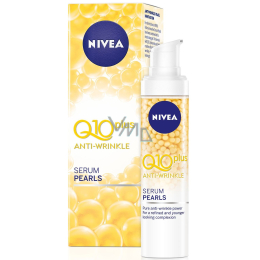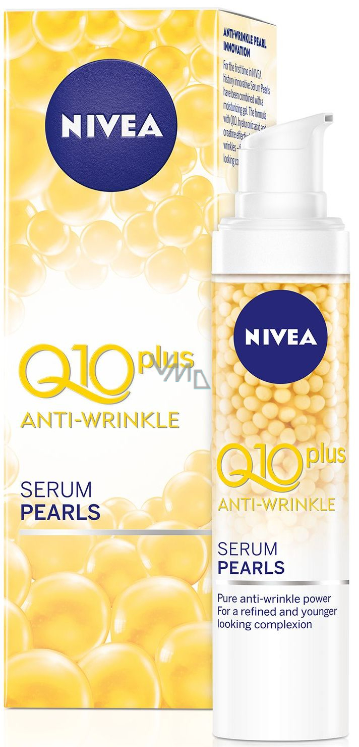 Nejúčinnější péče proti vráskám od značky Nivea. Perlové sérum s nejvyšší dávkou koenzymu Q10 v řadě Nivea Q10 plus a kyselinou hyaluronovou viditelně redukuje vrásky a zpomaluje vznik nových. Díky inovativní technologii perel se účinné složení aktivuje přímo při aplikaci a intenzivně hýčká pleť. Vyzkoušejte Perlové sérum proti vráskám Q10 plus a radujte se z hladké pleti bez vrásek.