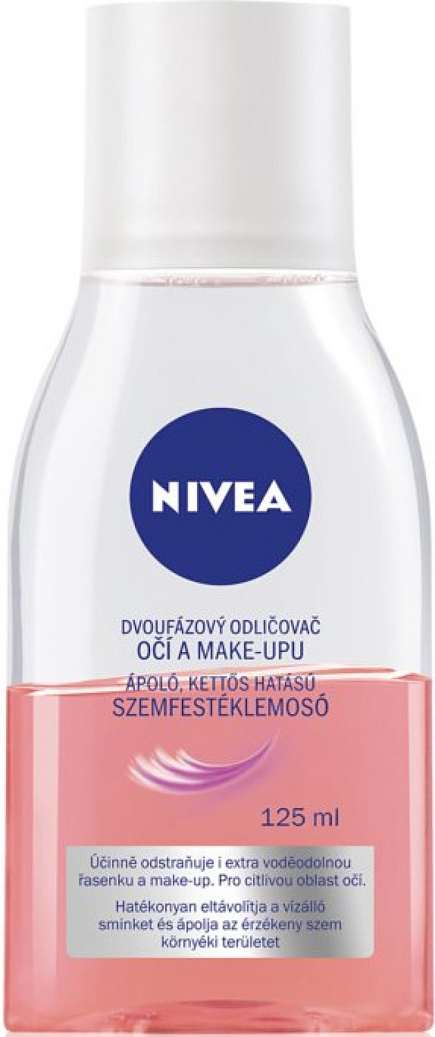 Nivea® dwufazowy demakijaż oczu i makijażu z organiczną wodą różaną i olejem usuwa nawet wodoodporny makijaż. Oftalmologicznie testowany i zatwierdzony.