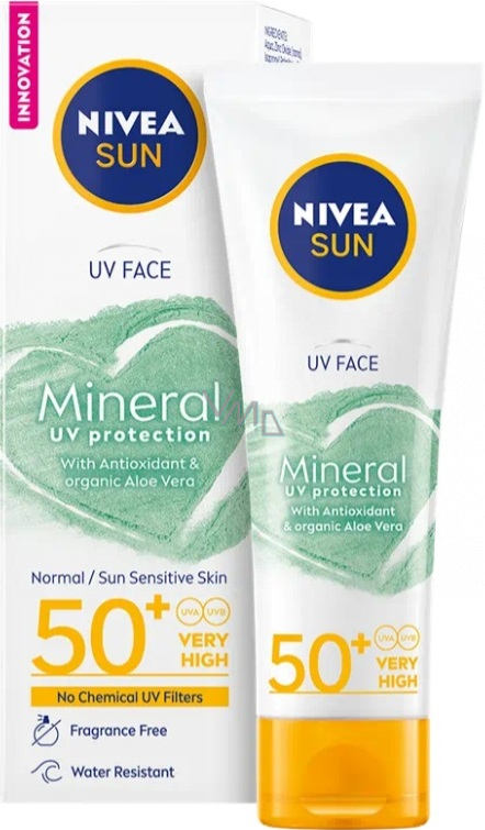 Neparfémované složení se 100% minerálními filtry, které vytváří na pleti ochranný film odrážející sluneční paprsky, poskytuje spolehlivou UVA a UVB ochranu. Díky tomu je vhodný i pro citlivou pleť. Krém s antioxidanty a bio aloe vera chrání pleť před poškozením vlivem slunečního záření a předčasným stárnutím. Nemastné složení zmatňuje pleť a neucpává póry. Neobsahuje chemické UV filtry. Vhodný pro každodenní použití, voděodolný. Dermatologicky testováno a schváleno.