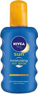 Pohodlná aplikace a spolehlivá ochrana před slunečními paprsky. Složení s vyváženým poměrem UVA a UVB filtrů nezanechává mastný film a rychle se vstřebává. Nivea Sun Sprej na opalování poskytuje okamžitou ochranu před spálením a předčasným stárnutím vlivem slunečního záření. Lehké složení pokožku dlouhodobě hydratuje, rychle se vstřebává a nezanechává mastný film.