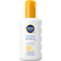 Promienie słoneczne potrafią cieszyć, ale też mocno dać się we znaki. Postaw na wodoodporny spray z ochroną UV, który zapobiegnie poparzeniom i podrażnieniom. Bezzapachowy skład z aloesem i olejem jojoba nie pozostawia tłustego filmu, łatwo się rozprowadza i szybko wchłania. Wypróbuj łagodzącą, bezzapachową pielęgnację: NIVEA Spray do opalania Sensitive OF 30.