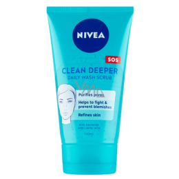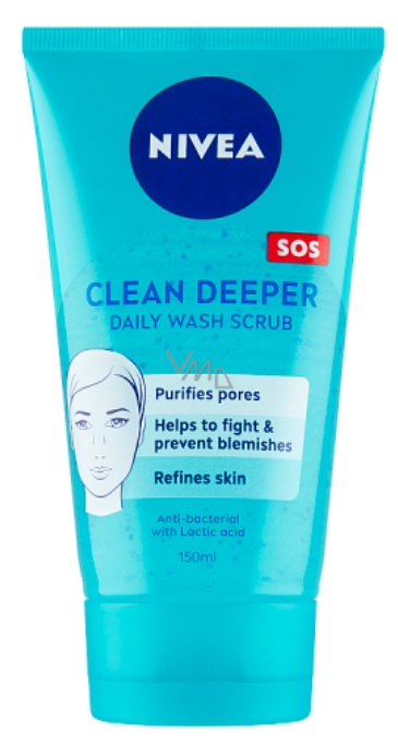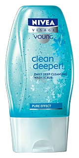 NIVEA VISAGE Pure Effect Hloubkově čisticí gel Clean Deeper byl vyvinut speciálně pro péči o problematickou pleť. Efektivní osvěžující složení vyčistí póry do hloubky díky speciálnímu dvojímu účinku. Modré perličky s kyselinou mléčnou uvolňují ucpané póry a díky tomu pomáhají předcházet pupínkům a černým tečkám. Drobná peelingová zrníčka odstraňují z pleti odumřelé kožní buňky a vyhlazují její povrch.