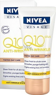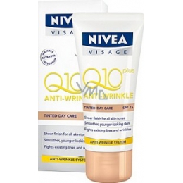 Nivea Visage Tónovací denní krém proti vráskám Q10 plus obsahuje zvýšenou UVA ochranu pro lepší prevenci proti vráskám. Je součástí ověřeného protivráskového programu Nivea Visage.