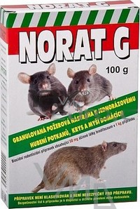 Norat je granulovaná požerová nástraha pro hubení potkana, krysy a myši domácí v uzavřených objektech nebo v jejich těsné blízkosti. Účinnou látkou je brodifacoun v koncentraci 0,005 %.