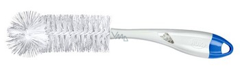 Nuk kartáč na láhve 2 v 1 velký + malý na savičku. Savičky a láhve jsou důkladně předčištěny díky přizpůsobivému profilu kartáče a štětinám, které drží tvar. Praktické - kartáček na savičky je zacvaknutý do rukojeti kartáče na láhve a nemůžete ho tedy ztratit. Otvor v rukojeti kartáče na láhev zaručí, že kartáček na savičky rychle uschne.