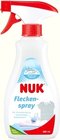 Nuk sprej na fleky odstraňuje typické dětské flíčky z prádla, jako např. skvrny od jídla, velmi šetrným ale obzvláště efektivním způsobem. Speciální prací formule na bázi vody a minerálů. Optimálního výsledku docílí tento sprej v kombinaci s Nuk pracím prostředkem na dětské prádlo. Všechny složky jsou vypláchnuty beze zbytků a jsou dermatologicky testovány.