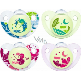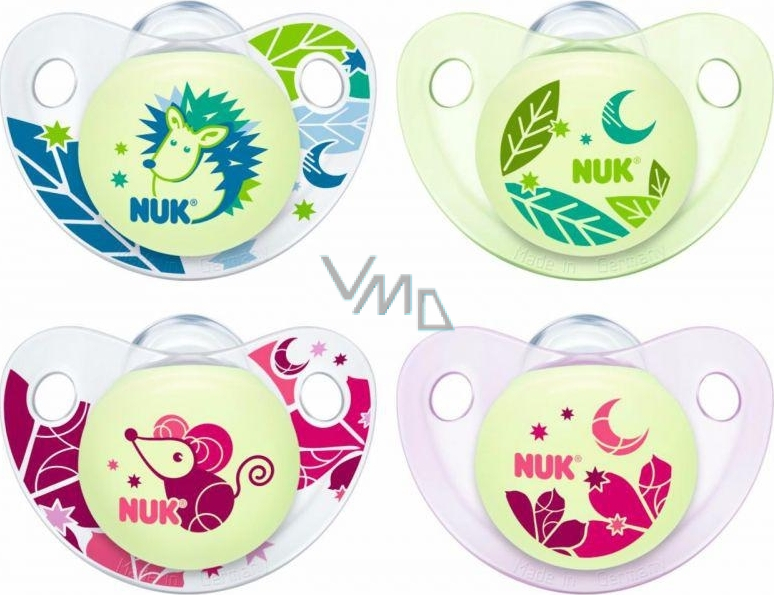 Ve tmě svítící dudlík značky Nuk s veselými obrázky kolekce Den & Noc řady Trendline. Tento dudlík je určen dětem věku 6–18 měsíců, má ortodontický tvar sosáčku, který je vyroben ze silikonu. Dudlík je vyroben z vysoce kvalitního plastu a silikonového dudlíku, svítí ve tmě.