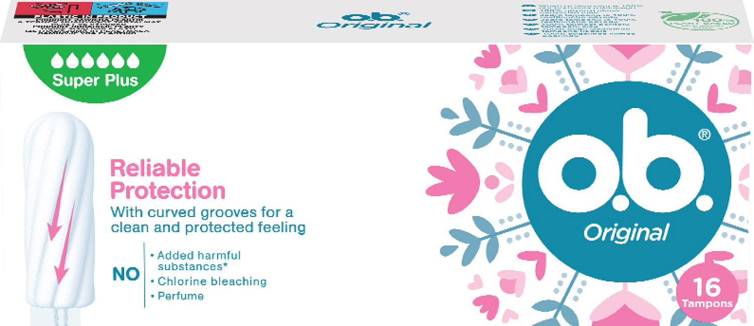 O.b. tampony ze skręconymi rowkami zostały specjalnie zaprojektowane, aby skutecznie prowadzić ciecz do wnętrza tamponu. Dla niezawodnej ochrony. Powierzchnia Silk Touch dla najłatwiejszego wprowadzenia. Tampony o.b.® Original Super Plus są odpowiednie na dni z bardzo silnym krwawieniem.