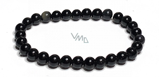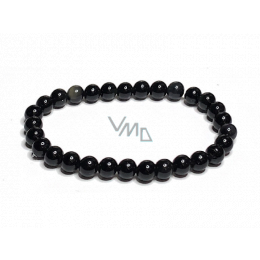 Obsidian náramek elastický přírodní kámen, kulička 6 mm / 16 - 17 cm, kámen záchrany