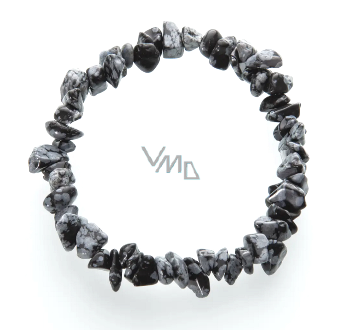 Bransoletka z obsydianu w płatkach elastyczna cięta naturalny kamień 19 cm, kamień ochrony