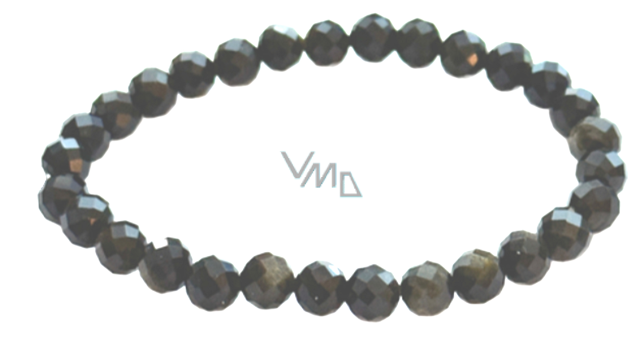 Obsidian zlatý náramek fazet elastický přírodní kámen, kulička 6 mm / 16 - 17cm, kámen záchrany