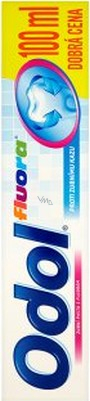 Zubní pasta s aktivním fluorem. Pomáhá chránit proti zubnímu kazu.