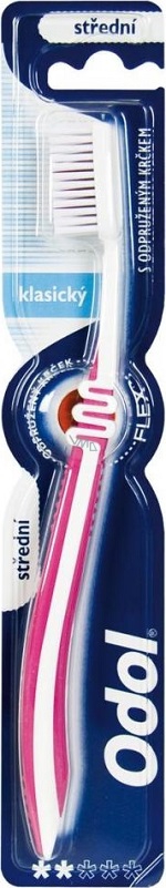 Klasický zubní kartáček se středně tvrdými vlákny. Speciální odpružení krčku absorbuje nadměrný tlak či nárazy a chrání tak před poraněním dásní. Kvalitní štětiny se zaoblenými konci zajišťují šetrné čištění zubů a ohleduplnost k dásním. Kartáček pomáhá vyčistit i těžce dostupná místa. Unikátní štětinky prostupují hluboko do mezizubních prostor a odstraňují zubní povlak a škodlivé bakterie.