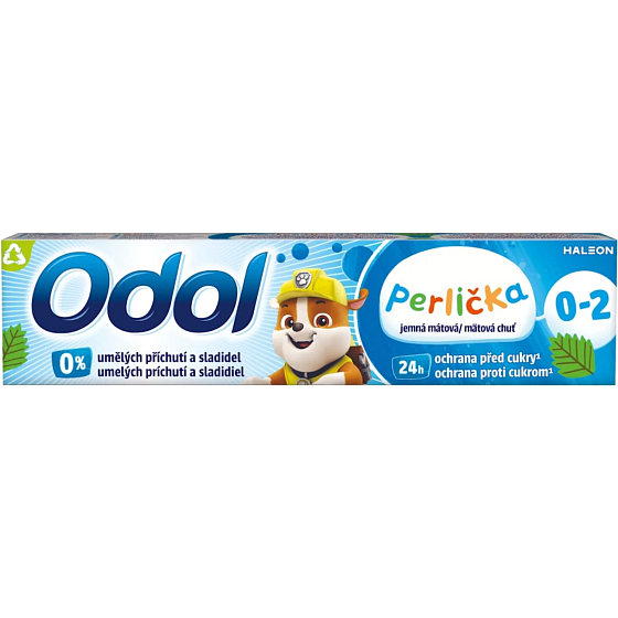 Pasta do zębów Odol Perlička o smaku miętowym jest specjalnie opracowana dla najmniejszych dzieci w wieku od urodzenia do 2 lat. Jej skład respektuje potrzeby wrażliwych zębów mlecznych i dziąseł, jest bez cukru i bez agresywnych składników pianotwórczych oraz zawiera niską dawkę fluoru (250 ppm), która jest odpowiednia dla niemowląt i małych dzieci.